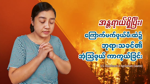 ထိုအချိန်က လေသည် အနောက်မြောက်သို့ တိုက်နေခဲ့ သည်။ မီးခိုးထုကြီးဖြင့် မီးတောက်များသည် ပို၍ တိုးပွားနေသည့် စွမ်းအားဖြင့် တောက်လောက်ပြီး၊ ကျွန်မအိမ်ရှိရာသို့ ခုန်လာ၍ ကျွန်မကို ကြောင်တောင် တောင် ဖြစ်စေခဲ့ပါသည်။ အချို့မီးတောက်များက နွားမစင်အချို့ပေါ်သို့ တည့်တည့်ကျရောက်ကာ၊ ရုတ်တရက်ကြီး နွားမစင်ပုံတစ်ခုလုံး စတင်မီးတောက် လာခဲ့သည်။ မီးက ကျွန်မနေအိမ်မှနေပြီး မီတာတစ်ဒါဇင် လောက်သာ ကွာဝေးတော့သည်။ မီးက ကျွန်မအိမ်ရှိရာ သို့ တလိမ့်လိမ့်ဖြင့် လာနေသည်ကို တွေ့ရင်းဖြင့်၊ ကျွန်မနှလုံးသားသည် ဆို့နင်လာသည်ဟု ခံစားရပြီး၊ ကျွန်မက “ဒီတစ်ခါတော့ အားလုံးသွားပါပြီ၊ ငါတို့ စုဆောင်းထားခဲ့သမျှ ပိုင်ဆိုင်မှုအားလုံးကတော့ မီးလောင်ကုန်တော့မှာပါပဲ” ဟု တွေးမိပါသည်။ လူအချို့က ၎င်းတို့၏ ပိုင်ဆိုင်မှုများကို ၎င်းတို့နေအိမ်မှ ရွှေ့ထုတ်နေကြသည်ကို တွေ့ရသော်လည်း၊ ကျွန်မမှာမူ မိမိခင်ပွန်းနှင့် ကလေးက နေအိမ်တွင် မရှိသောကြောင့် ထိုသို့မလုပ်နိုင်ခဲ့ပါ။ ကျွန်မမှာ စိုးရိမ်ကြောင့်ကျ သော်လည်း၊ လုပ်နိုင်သည့်အရာ တစ်ခုမျှ မရှိခဲ့ပါ။ ထို့နောက် ကျွန်မသည် ဘုရားသခင်ထံသို့သာ ဆုတောင်း ၍သာနေခဲ့သည်။ ကျွန်မ ဆုတောင်းခြင်းကာလအတွင်း ကျွန်မသည် ယောဘ၏ စမ်းသပ်မှုများကို သတိရမိ သည်။ သူ၏ပိုင်ဆိုင်မှုများအားလုံးကို သိမ်းယူခံရပြီး၊ သူ၏ သားသမီးများအပေါ် ဘေးဒုက္ခ ကျရောက်ခဲ့ သည်။ သို့သော်လည်း ယောဘသည် ဘုရားသခင်ကို အပြစ်တင်ရမည့်အစား “...ယေဟောဝါသည် ပေးတော်မူ၏၊ ပြီးလျှင် ယေဟောဝါသည် ပြန်နုတ်သိမ်းတော်မူ၏၊ ယေဟောဝါ၏ နာမတော်သည် မင်္ဂလာရှိပါစေဟု ဆိုလေ၏။” (ယောဘဝတ္တု ၁:၂၁) “ငါတို့သည် ဘုရားသခင်၏လက်တော်မှ သုခချမ်းသာကို ခံယူသည်ဖြစ်၍၊ ဒုက္ခဆင်းရဲကို မခံမယူရာသလော။” (ယောဘဝတ္တု ၂:၁၀) ဟု ပြောခဲ့သည်။ ဘုရားသခင်၏ ဉာဏ်အလင်းပေးခြင်း နှင့် လမ်းပြမှုတို့က ကျွန်မအား ဘုရားသခင်၏ အလိုတော် ကို နားလည်သဘောပေါက် စေပါသည်။ ယောဘသည် ကျွန်မ လိုက်လျှောက်သင့်သည့် နမူနာတစ်ခု ဖြစ်ပါ သည်။ စမ်းသပ်မှုကို ရင်ဆိုင်ရာတွင် ကျွန်မသည် ဘုရားသခင်ရှေ့တော်မှောက်တွင် နာခံကာ၊ မညည်းတွား ပဲနေမည်။ ထို့နောက်တွင် ကျွန်မနှလုံးသားထဲမှနေပြီး “အိုဘုရားသခင်၊ ကျွန်မရဲ့ ပိုင်ဆိုင်မှုတွေအားလုံးက ကိုယ်တော်ပေးသနားခဲ့တာပါ။ အဲဒီမီးကလည်း ကိုယ်တော့်လက်တော်ထဲမှာပဲ ရှိပါတယ်။ ကျွန်မဘယ်လိုပတ်ဝန်းကျင်ကိုပဲ တွေ့ကြုံရပါစေ၊ ကျွန်မ ကိုယ်တော်ရဲ့ စီစဉ်မှုကို နာခံဖို့ လိုလားပါတယ်။” ဟု ဘုရားသခင်ကို ဆုတောင်းခဲ့သည်။