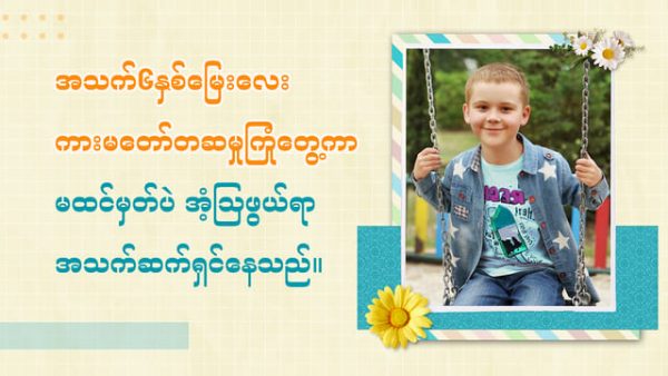 ဒန်နီ မြန်မာနိုင်ငံ ကျွန်မ ငယ်ငယ်တုန်းက ခရစ်ယာန်ဘာသာကို စိတ်ဝင်စားခဲ့တယ်။ ဒါပေမဲ့ ကျွန်မ မိသားစုက ဗုဒ္ဓဘာသာဆိုတော့ ကျွန်မက ခရစ်ယာန်ဖြစ်မလာခဲ့ဘူး။ အဲဒီတုန်းက ငရဲအကြောင်းကို ကျွန်မ ကြားဖူးတယ်။ ဒါပေမဲ့ ...သားလေးကင်ဆာရောဂါရှိခြင်းကိုရင်ဆိုင်သည့်ချိန်တွင် သူမသည်ဤသို့ရွေးချယ်လိုက်သည်