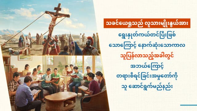 c့်အညီ မဆက်ဆံခြင်း ဟုသာ မှတ်ယူ၍ ရနိုင်ပေသည်။ သို့ရာတွင် ဇာတိ၏ ခန္ဓာဖြင့် အသက်ရှင်သည့် လူသားသည် အပြစ်မှ လွှတ်မြောက်ခြင်း မခံရသေးသည့်အခါ၊ သူသည် ဖောက်ပြန်ပျက်စီးသည့် ဆိုးယုတ်သော စိတ်သဘောထားကို မပြီးနိုင် မဆုံးနိုင် ထုတ်ဖော်ပြလျက်၊ အပြစ်ကိုသာ ဆက်လုပ်နိုင်သည်။ ဤအရာက အပြစ်ပြုခြင်းနှင့် ခွင့်လွှတ်ခြင်းနှင့်ဆိုင်သည့် အဆုံးမရှိသော သံသရာတစ်ခု ဖြစ်သည့် လူများ အသက်ရှင် နေထိုင်သည့် အသက်တာ ဖြစ်သည်။ လူသားမျိုးနွယ် အများစုသည် ညနေတွင် အပြစ်ဝန်ချရန်သာ နေ့ပိုင်းတွင် အပြစ်လုပ်ကြသည်။ ဤနည်းဖြင့် အပြစ်ဖြေရာယဇ်သည် လူအတွက် အစဉ်အမြဲ ထိရောက်သော်လည်း၊ ယင်းသည် လူကို အပြစ်မှ ကယ်တင်နိုင်လိမ့်မည် မဟုတ်ပေ။ လူသားသည် ဖောက်ပြန်ပျက်စီးသော စိတ်သဘောထား ရှိဆဲဖြစ်သည့်အတွက်၊ ကယ်တင်ခြင်း အမှု၏ ထက်ဝက်သာ ပြီးစီးသေးသည်။...လူသားအတွက် သူ၏ အပြစ်များကို သတိပြုမိလာရန်မှာ မလွယ်ကူချေ။ သူသည် သူကိုယ်တိုင်၏ နက်နက်ရှိုင်းရှိုင်း အမြစ်တွယ်ထားသော သဘာဝကို သတိမပြုမိနိုင်သကဲ့သို့၊ ဤရလဒ်ကို ရရှိဖို့အလို့ငှာ နှုတ်ကပတ်တော်၏ တရားစီရင်ခြင်းအပေါ် သူ မှီခိုရမည်ဖြစ်သည်။ ထို့သို့ဖြင့်သာ လူသည် ဤအချိန်မှစ၍ နောက်ပိုင်းတွင် တဖြည်းဖြည်း ပြောင်းလဲလာနိုင်သည်။” (နှုတ်ကပတ်တော်သည် လူ့ဇာတိ၌ ပေါ်လာ၏ စာအုပ်ထဲရှိ “လူ့ဇာတိခံယူခြင်း၏ နက်နဲရာအချက် (၄)”) အနန္တတန်ခိုးရှင် ဘုရားသခင်ရဲ့ နှုတ်ကပတ်တော်တွေက အရမ်းရှင်းလင်းတယ် မဟုတ်လား။ ကျေးဇူးတော်ခေတ်မှာ သခင်ယေရှုဟာ လူသားမျိုးနွယ် ကို ရွေးနှုတ်ကယ်တင်ပြီးဖြစ်တာကြောင့် နောက်ဆုံးသောကာလမှာ တရားစီရင်ဖို့အတွက် ဘာကြောင့် သူ ပြန်လာမှာလဲ။ ဘာကြောင့်လဲဆိုတော့ သခင်ယေရှုဟာ ရွေးနှုတ်ကယ် တင်ခြင်းအမှုတော်ကိုသာ ဆောင်ရွက်ပြီးတာဖြစ်ပြီး၊ ဘုရားသခင်ရဲ့ ကယ်တင်ခြင်းအမှုတော်ရဲ့တစ်ဝက်ကို သာ ပြီးဆုံးသေးတာဖြစ်တယ်။ ဒါဟာ လူသားတွေရဲ့အပြစ်တွေကနေ ရွေးနှုတ်ကယ်တင် ခြင်းကို ပြုလုပ်နိုင်ခဲ့ခြင်းဖြစ်တာကြောင့် ကျွန်မတို့အနေနဲ့ သခင်နဲ့မိတ်သဟာယဖွဲ့ပြီး ဆုတောင်း ဖို့ သူ့ရဲ့ကျေးဇူးတော်နဲ့ကောင်းချီးမင်္ဂလာတွေကိုလည်း ခံစားဖို့ အရည်အချင်းပြည့်မီတာဖြစ်တယ်။ ကျွန်မတို့ရဲ့အပြစ်တွေကနေ ခွင့်လွှတ်ခြင်းခံခဲ့ရပြီး သန့်ရှင်းသောဝိညာဉ်တော်ကပေးတဲ့ ငြိမ်းချမ်းရေးနဲ့ ပျော်ရွှင်မှုတွေကို ခံစားရပေမယ့် ကျွန်မတို့ဟာ အမြဲဆက်ပြီး တစ်ချိန်လုံး အပြစ်တွေ လုပ်နေတယ်၊ အပြစ်လုပ်ခြင်းသံသရာထဲမှာ ပိတ်မိနေပြီး ဝန်ချတောင်းပန်လိုက်၊ အပြစ်ပြန်လုပ်လိုက် ဖြစ်နေကြ တယ်။ အပြစ်ရဲ့ချည်နှောင်မှုတွေနဲ့အဟန့်အတားတွေကနေ ဘယ်သူမှ ရုန်းထွက်လို့မရပေမယ့် ကျွန်မတို့ဟာ ရုန်းကန်ရင်းနဲ့ပဲ ရှင်သန်နေကြရတယ်။ ဒါဟ